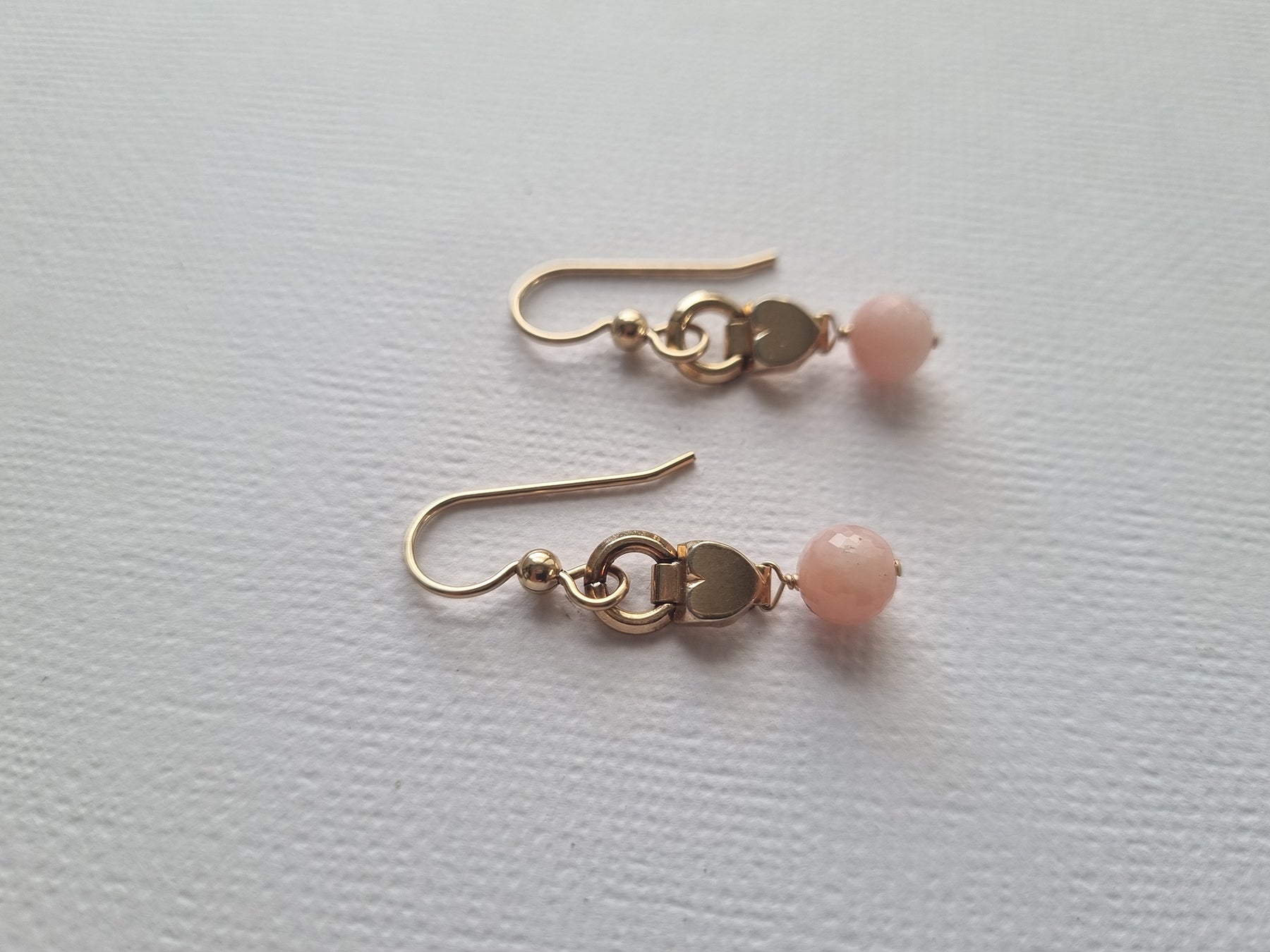 Regular price $198 USDSuper cute heart-shaped links from a vintage gold-filled watch bracelet are paired simply with faceted cotton-candy pink opals in these adorable everyday earrings!