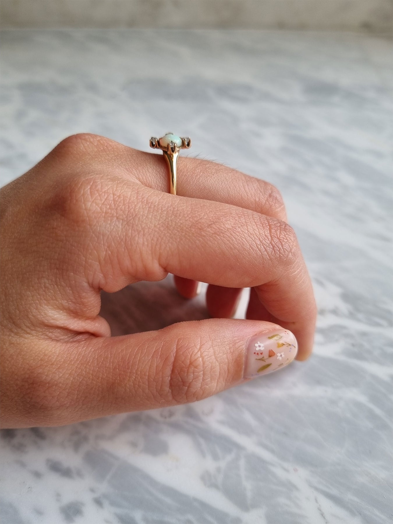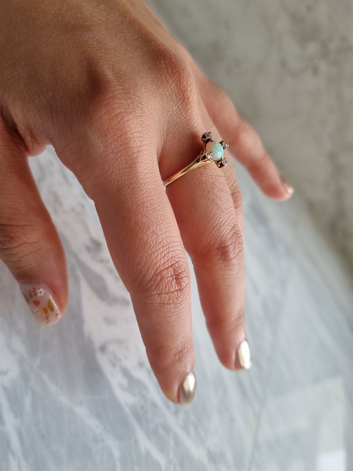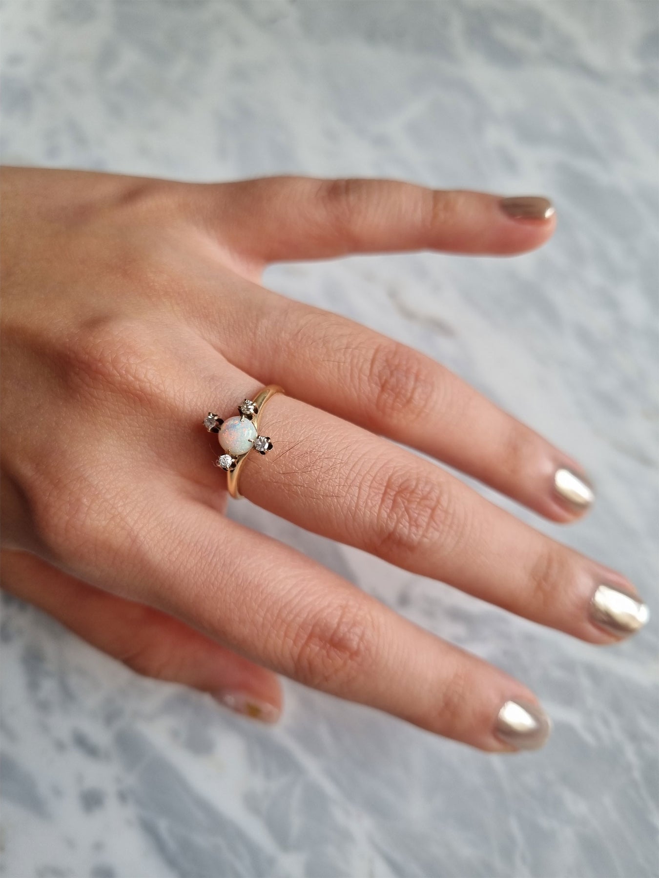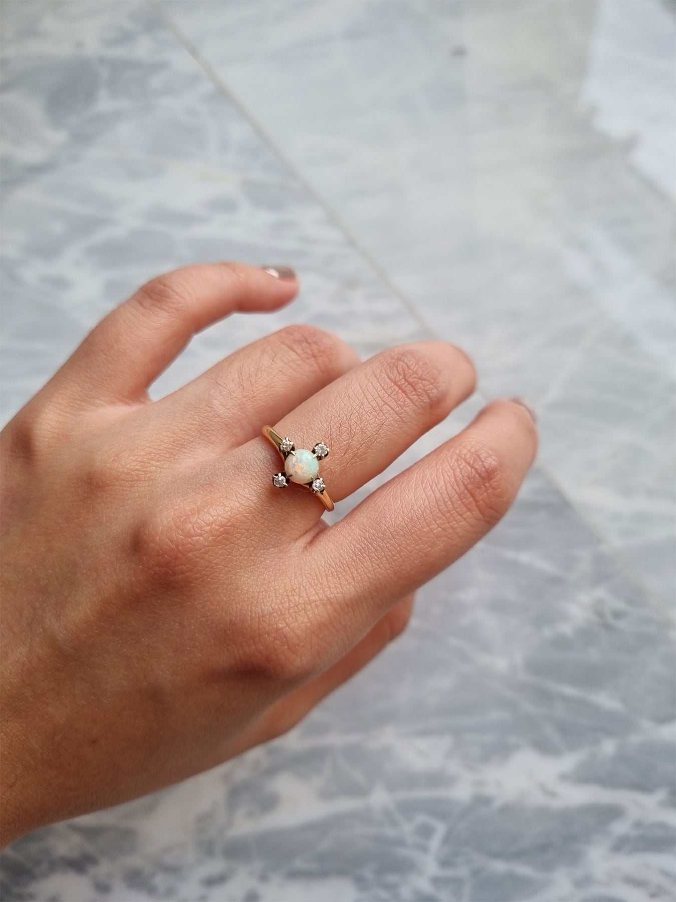 Mia - Antique 14K Opal and diamond ring | FINE - pequitobun Jewellery