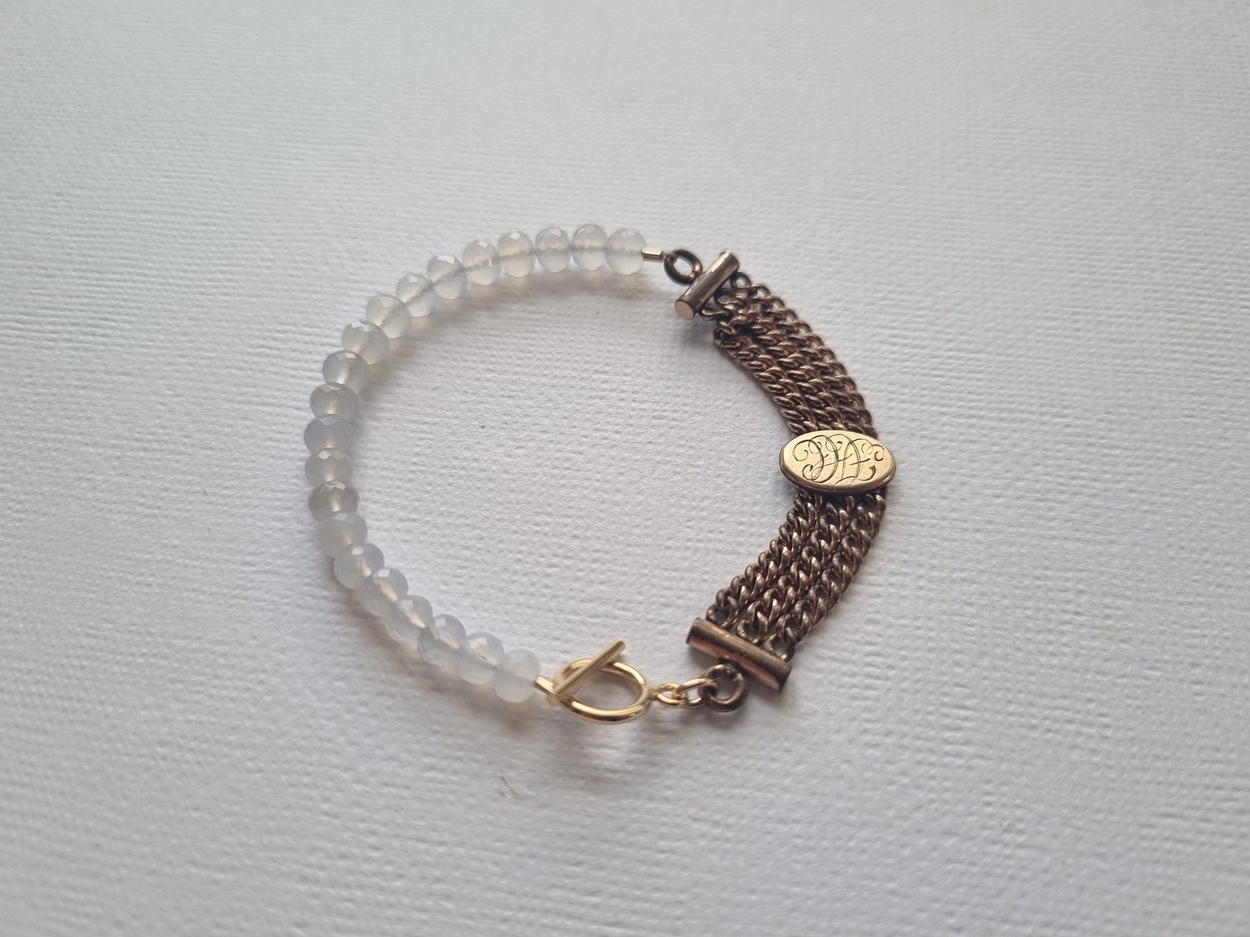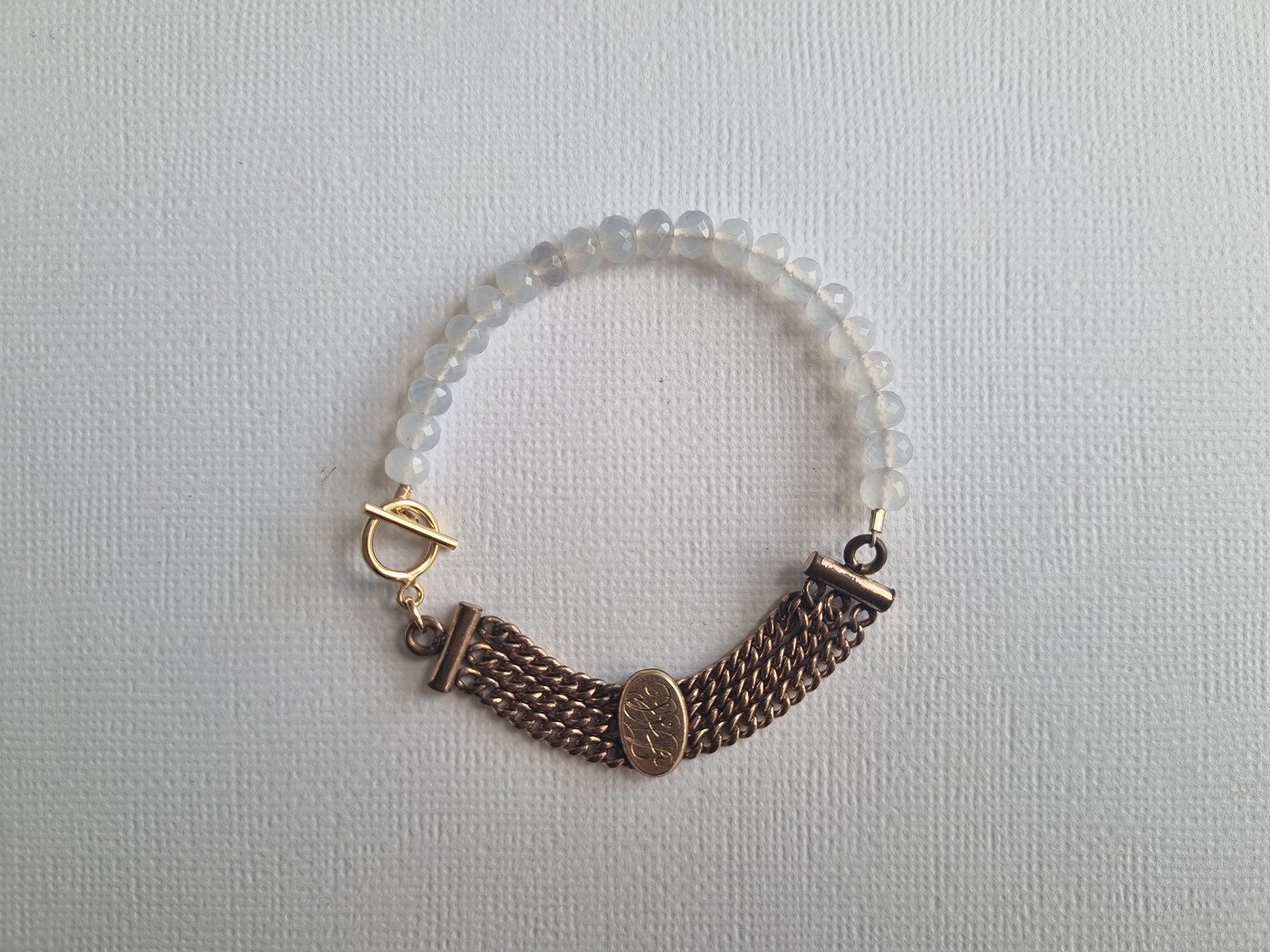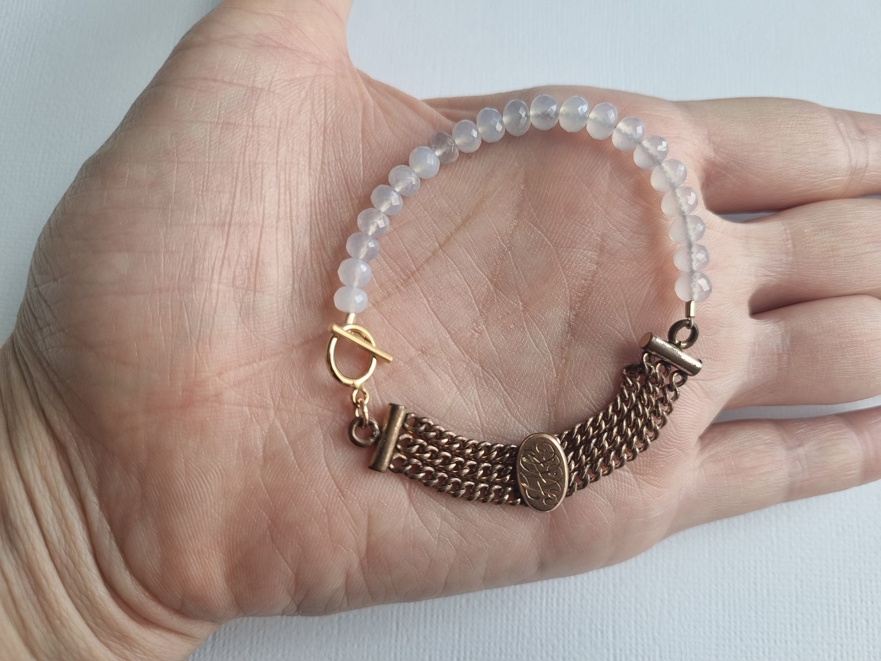 moonlight letters | Antique watch chain chalcedony bracelet