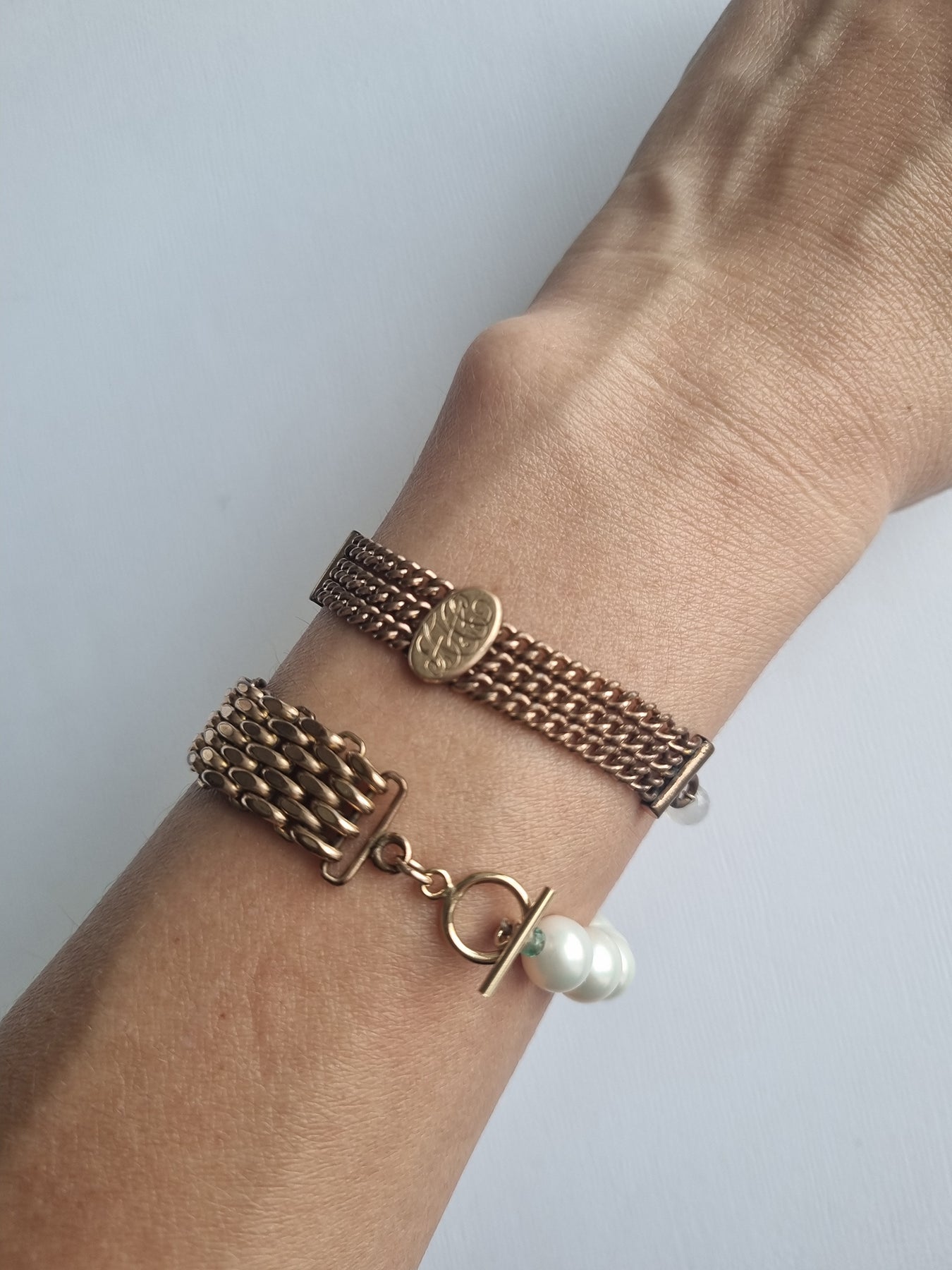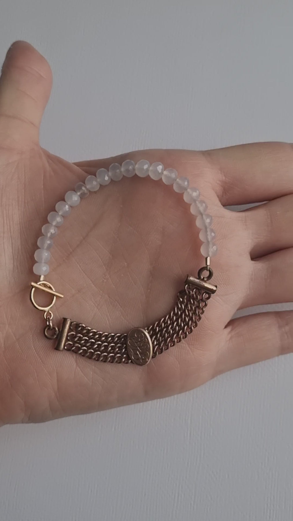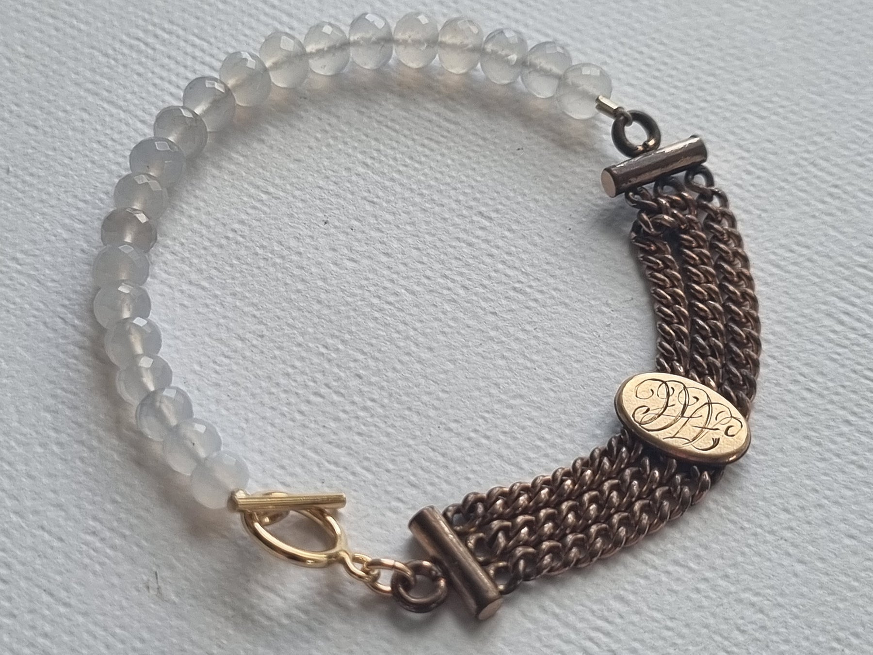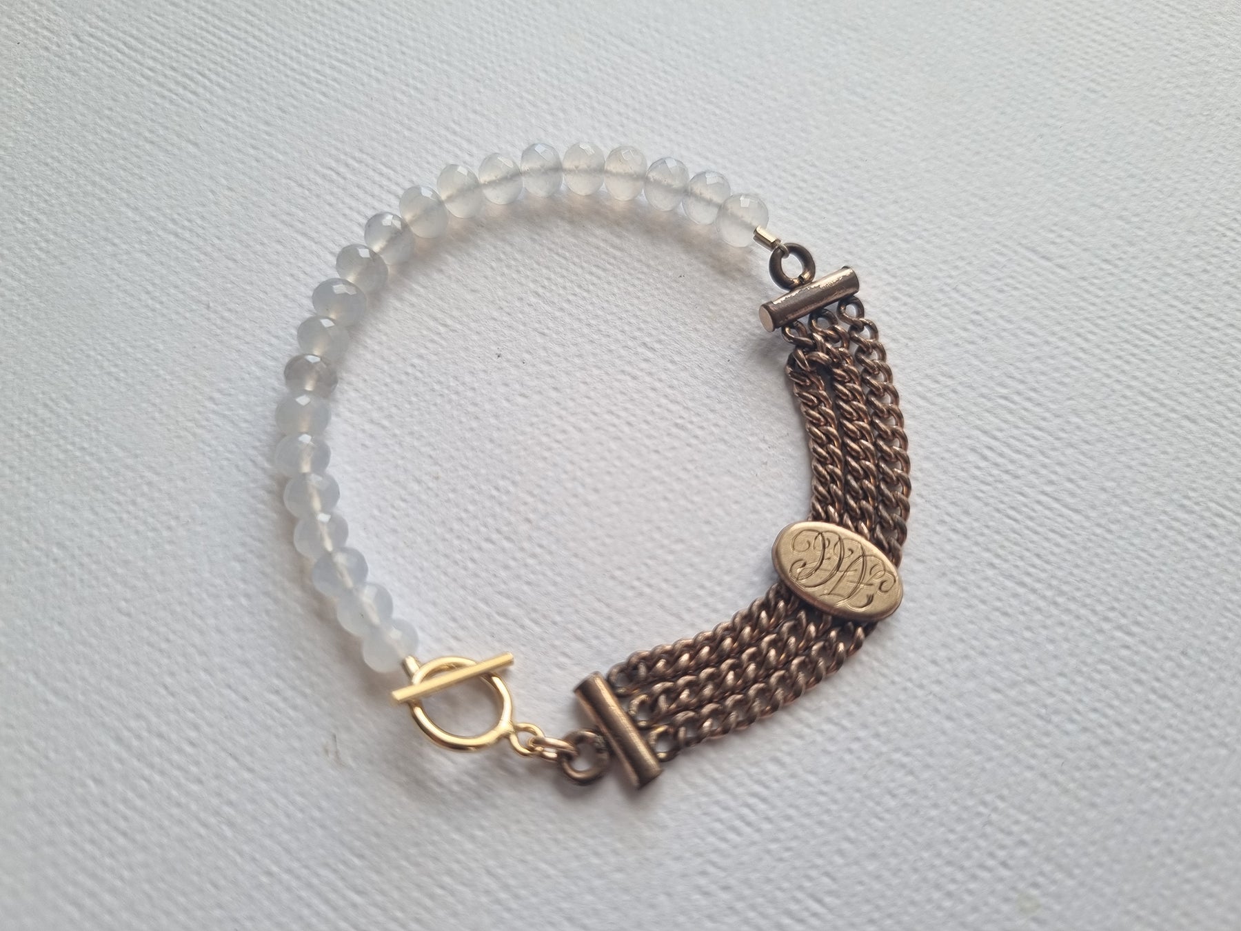 moonlight letters | Antique watch chain chalcedony bracelet
