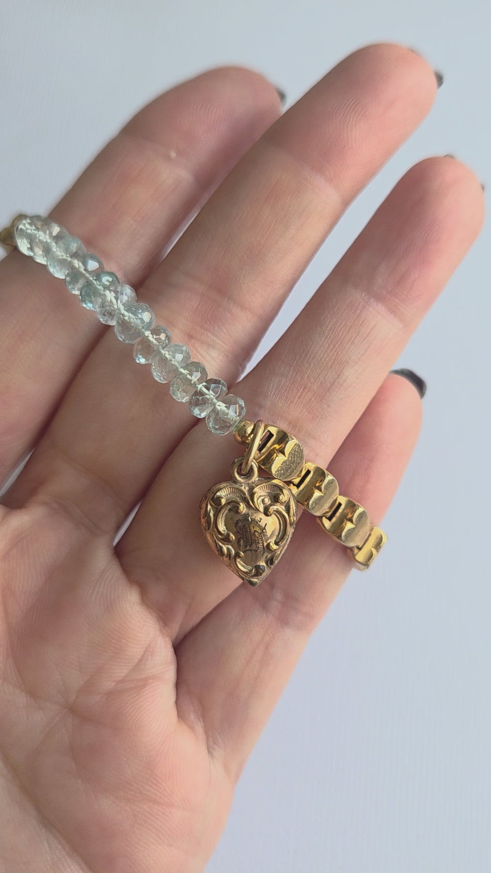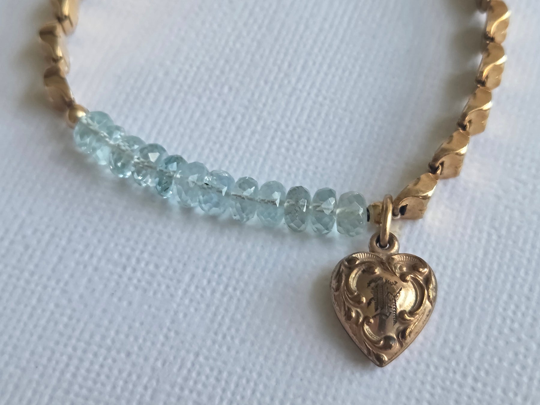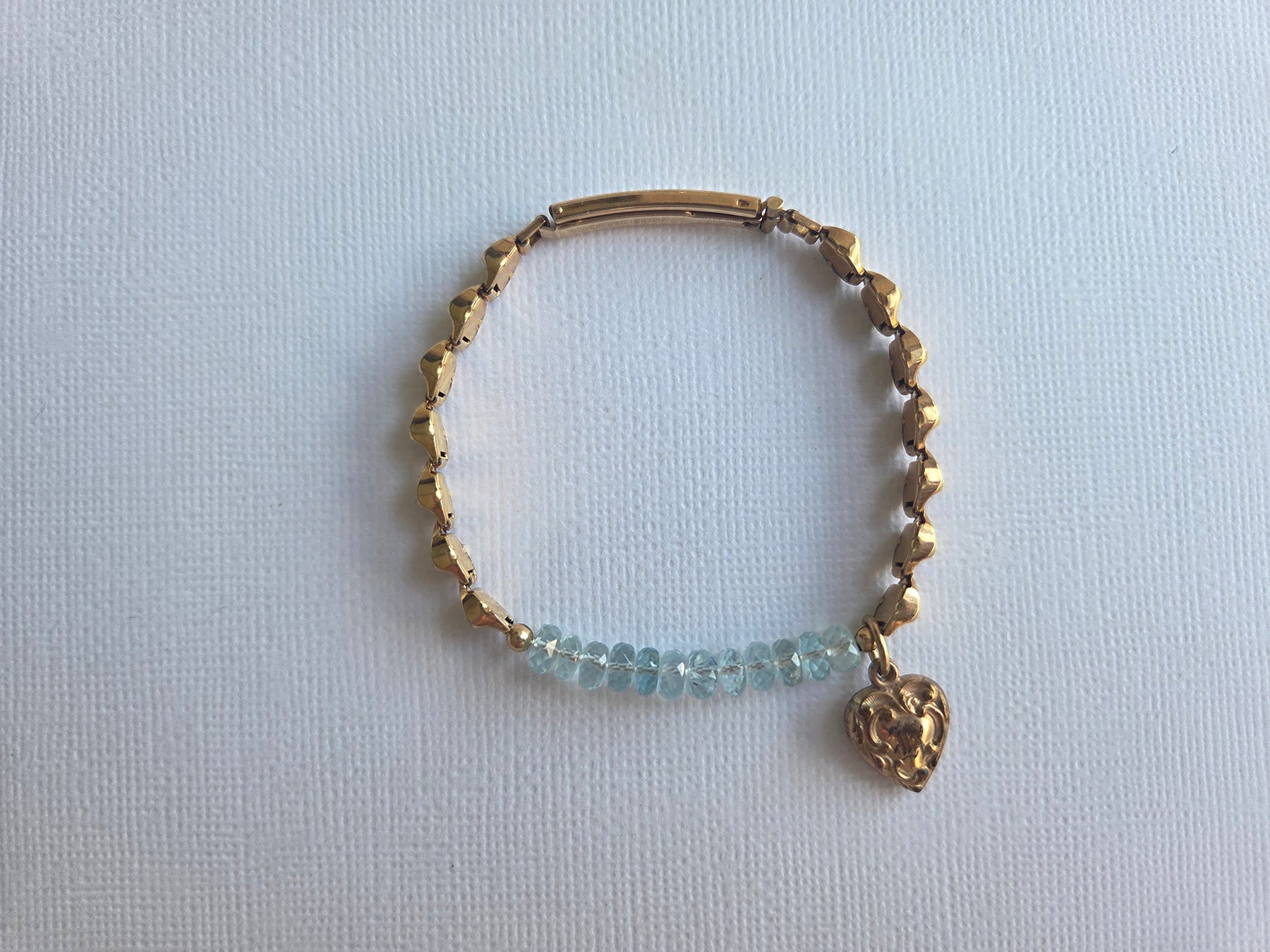 the heart bracelet | Antique heart charm blue aquamarine bracelet