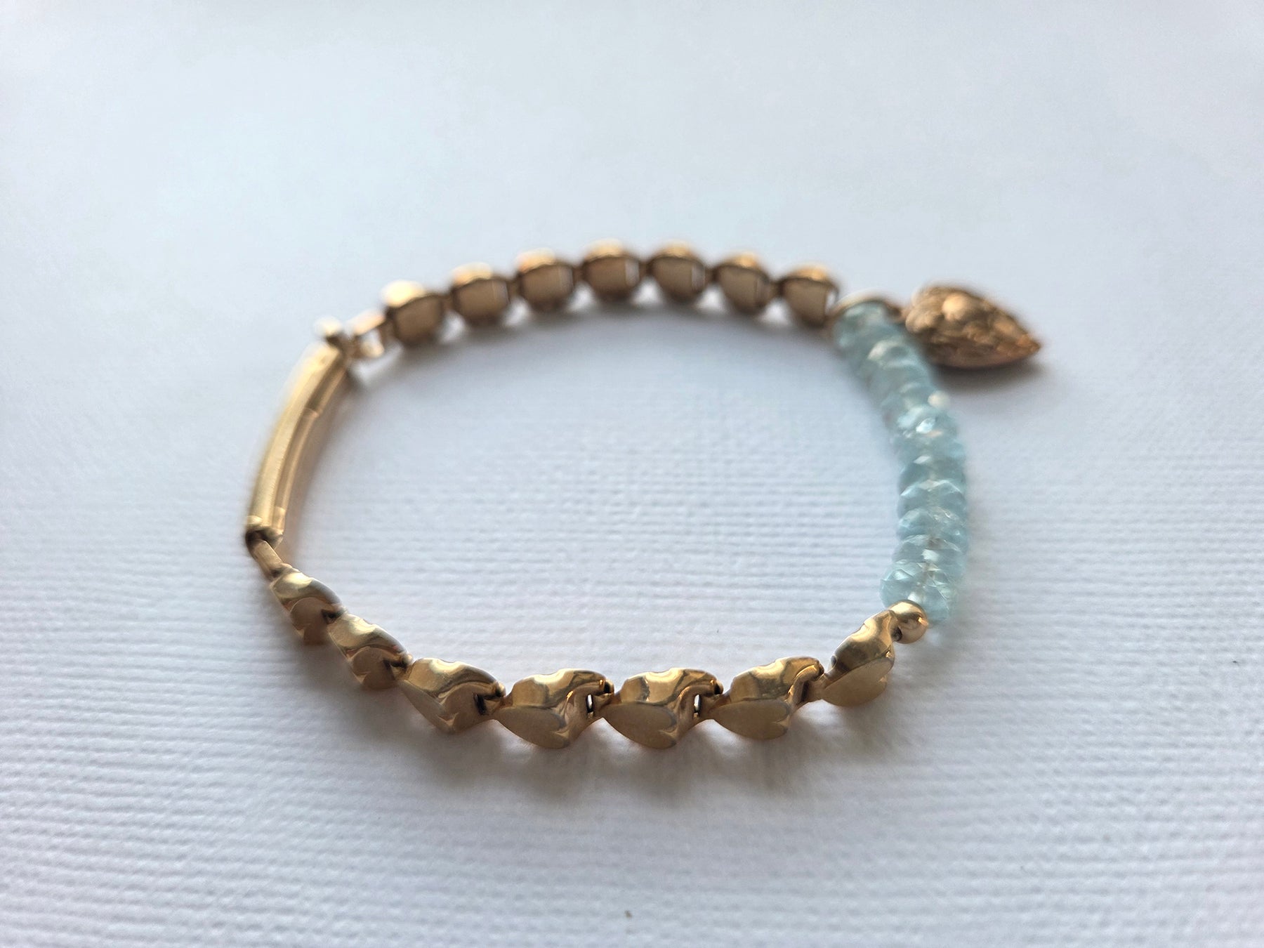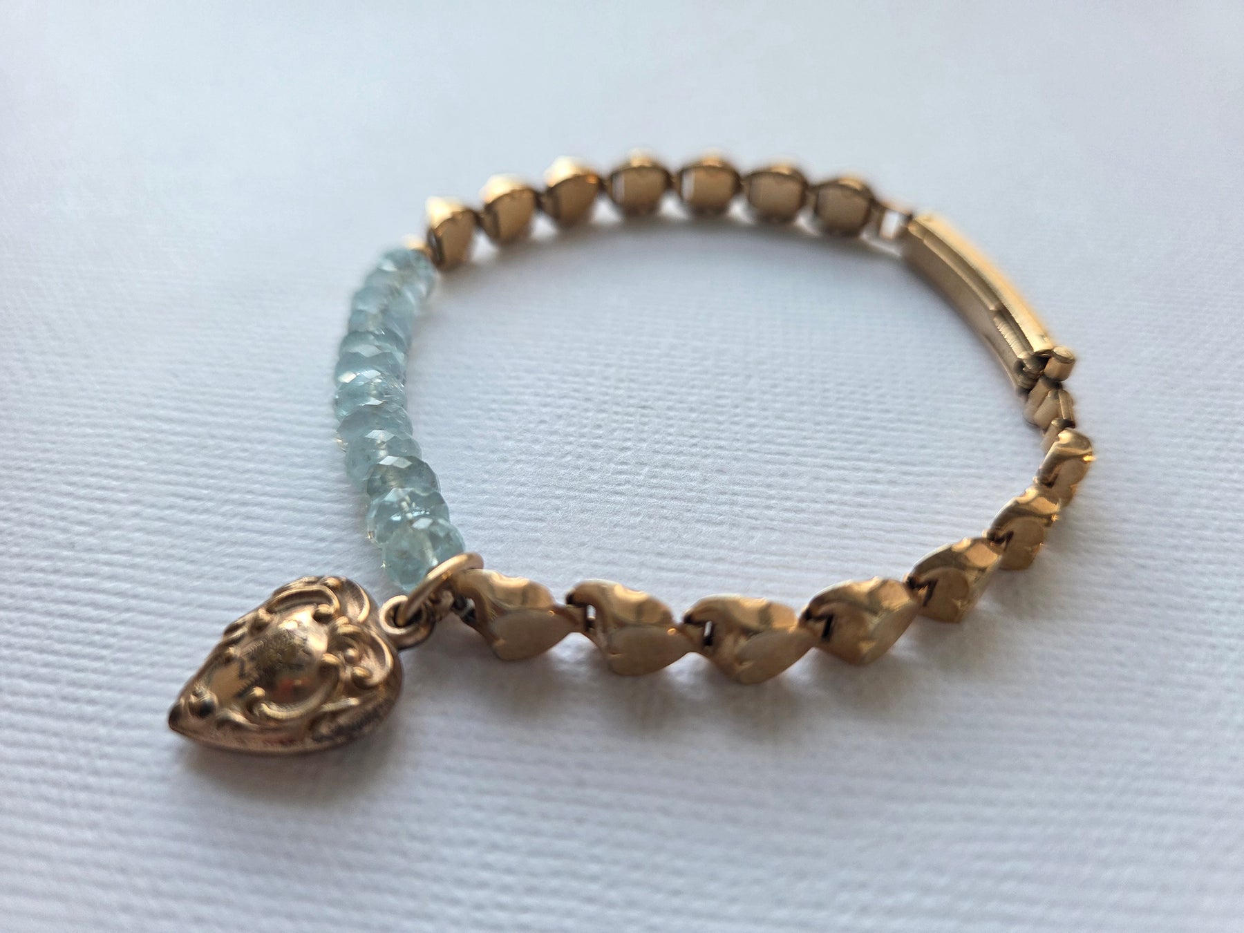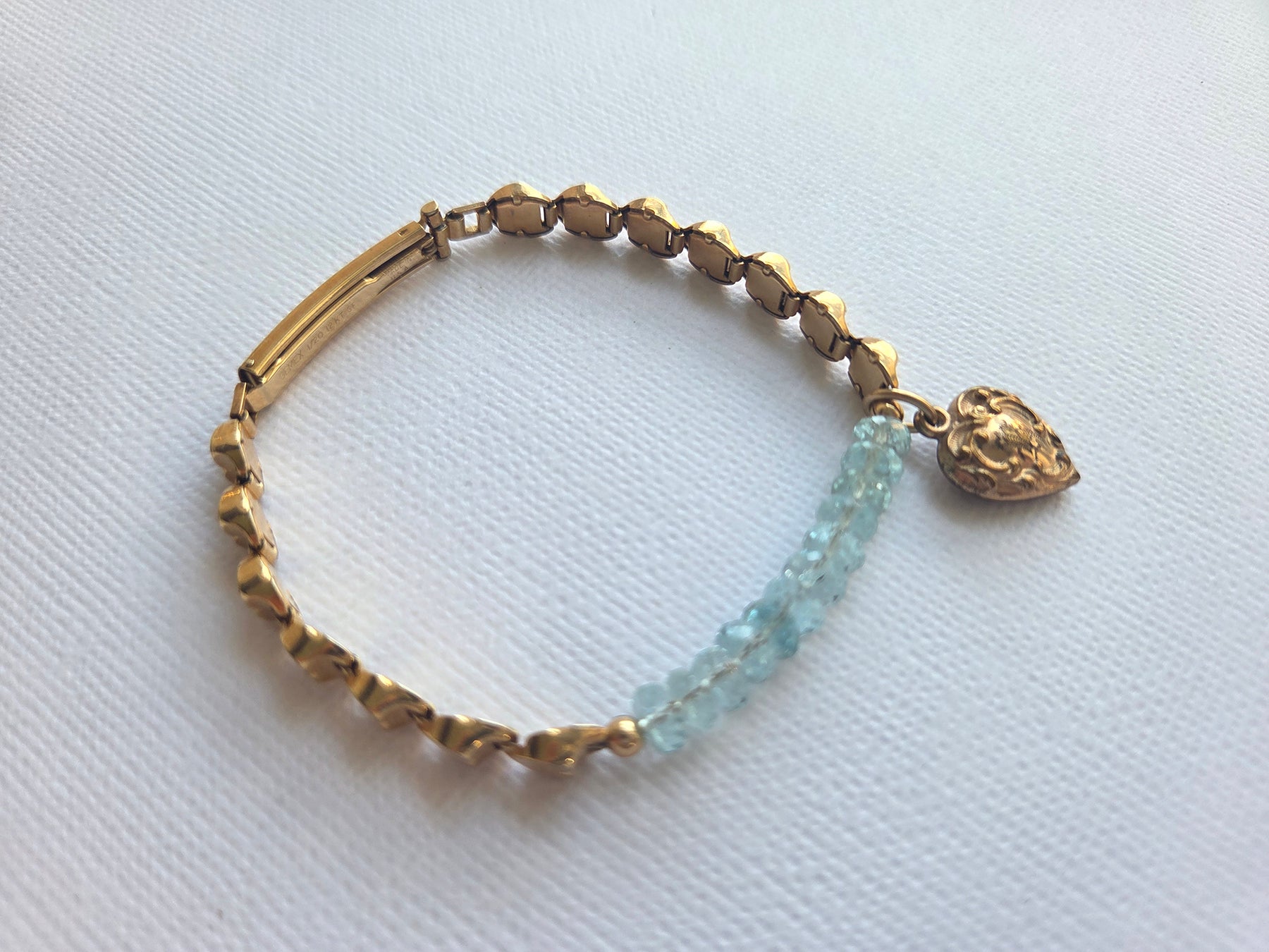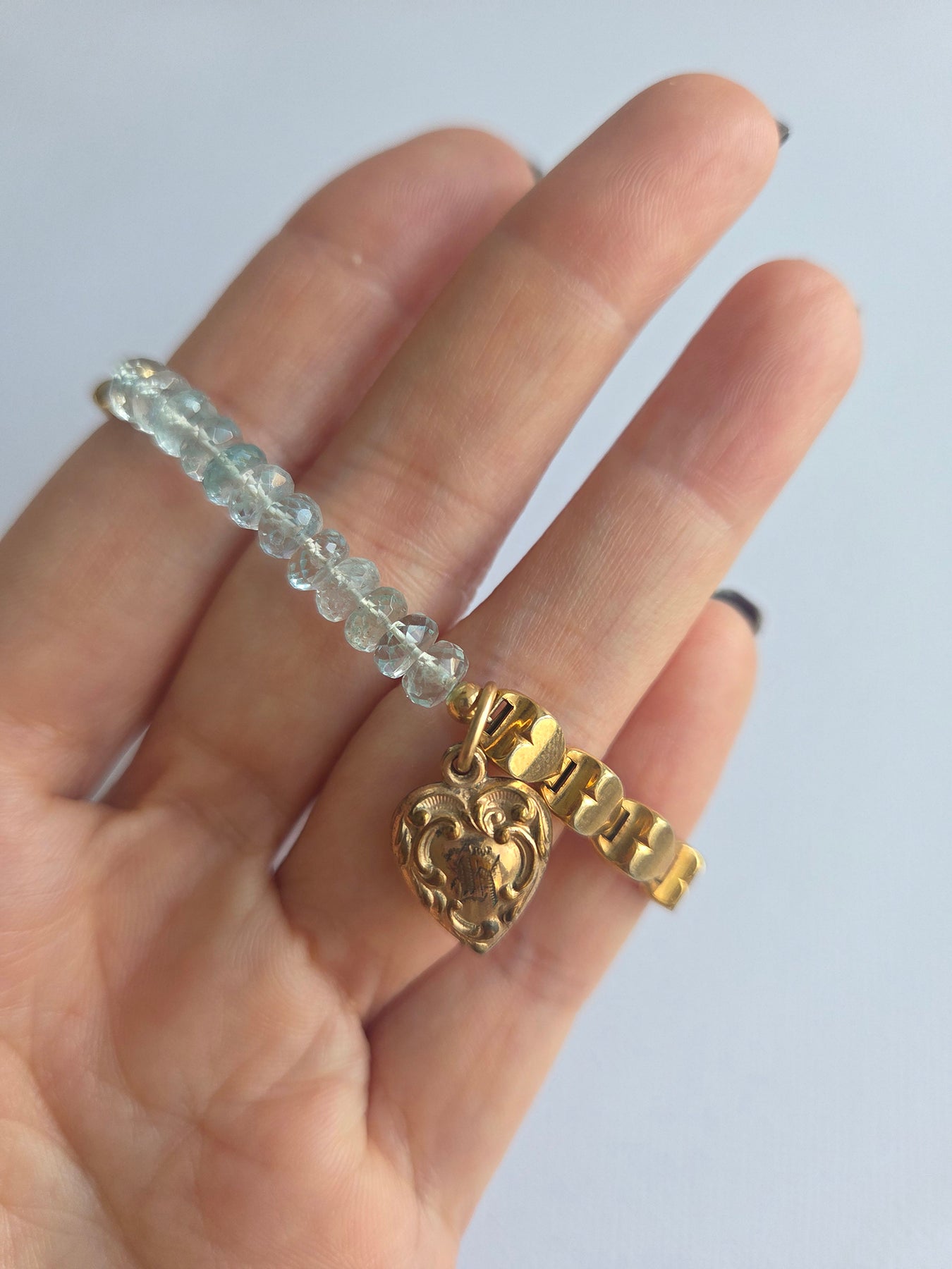 the heart bracelet | Antique heart charm blue aquamarine bracelet